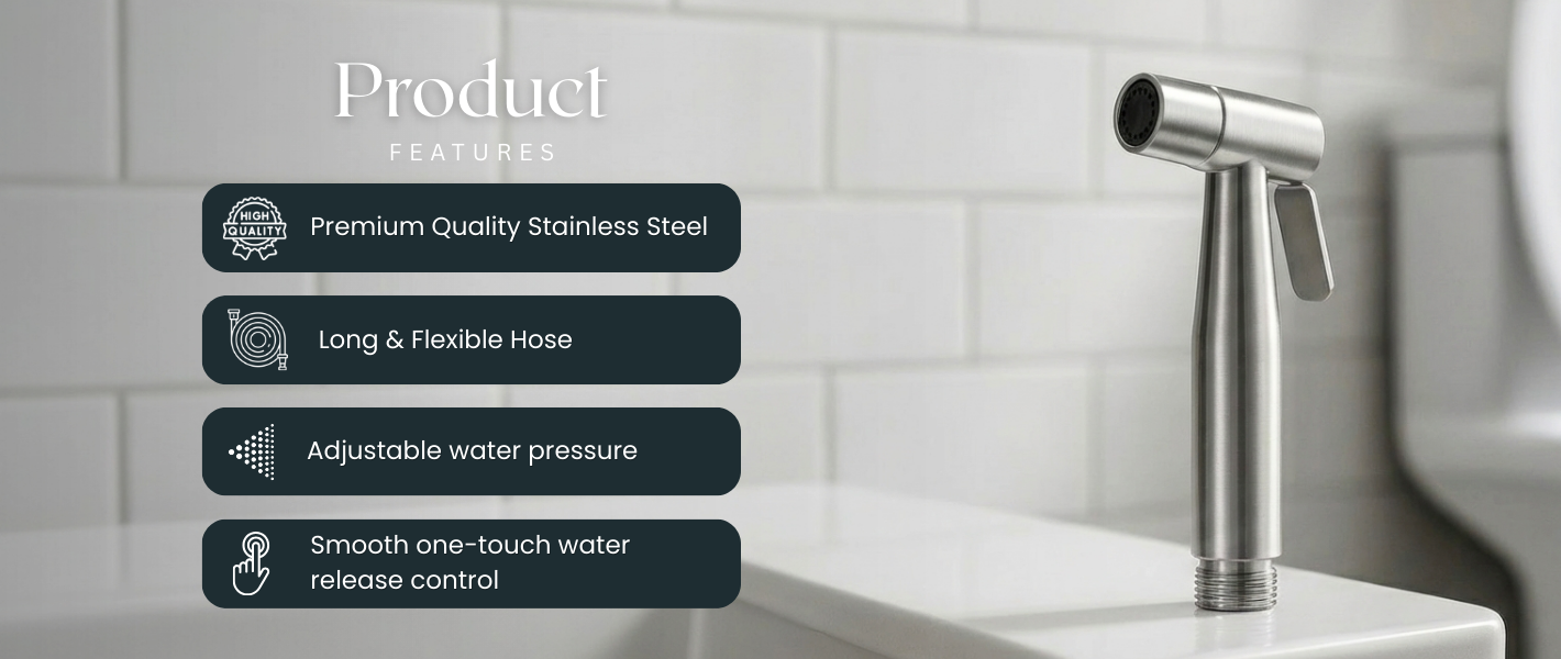 Crafted from premium-grade stainless steel, this handheld bidet spray is built for durability, ease of use, and sustainable hygiene.
